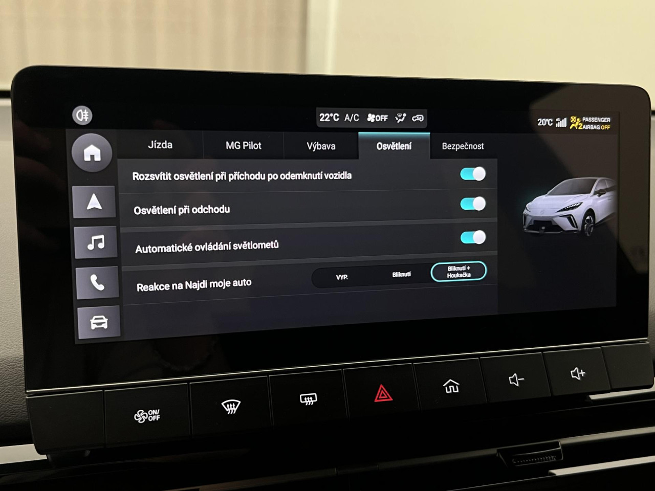 Skladový vůz s okamžitou možností odběru, 7letou zárukou a asistenční službou zdarma. Vozy MG vynikají bohatou výbavou a zajímavou cenou, a proto je ideální doba ke koupě nového vozu. Údaje obsažené v této kartě vozu mají informativní charakter a nemohou zachytit veškeré detaily stavu vozidla. Podrobný popis stavu bude ověřen až v okamžiku poptávky koupě. Z této indikativní nabídky nevzniká nárok na uzavření smlouvy. Navštivte nás v Orbion Cars – pobočka Brno, těšíme se na Vás. Možnost převzetí vozu v Brně nebo v Praze.