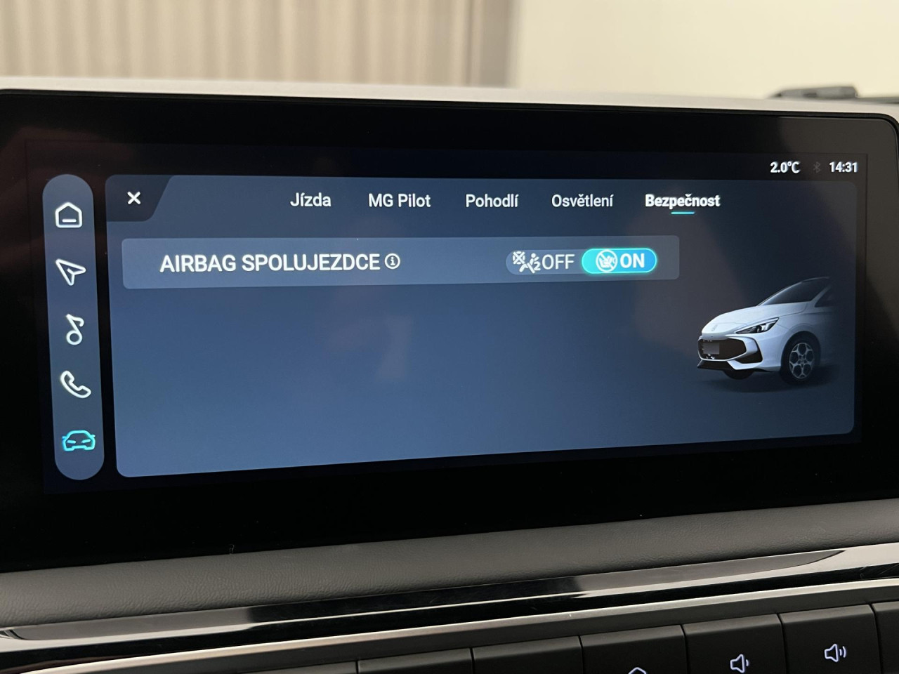 - deaktivace airbagu spolujezdce